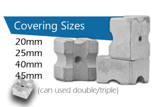 Concrete Spacers are little concrete parts positioning of rebar on the right place with the right cover. These spacers are important for the optimum adhesion of the poured concrete.